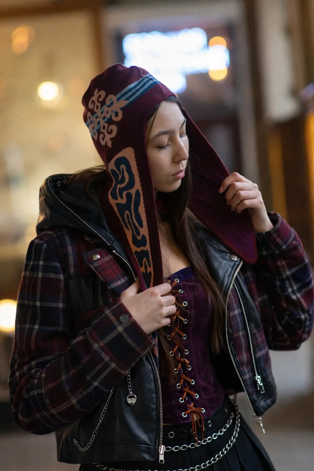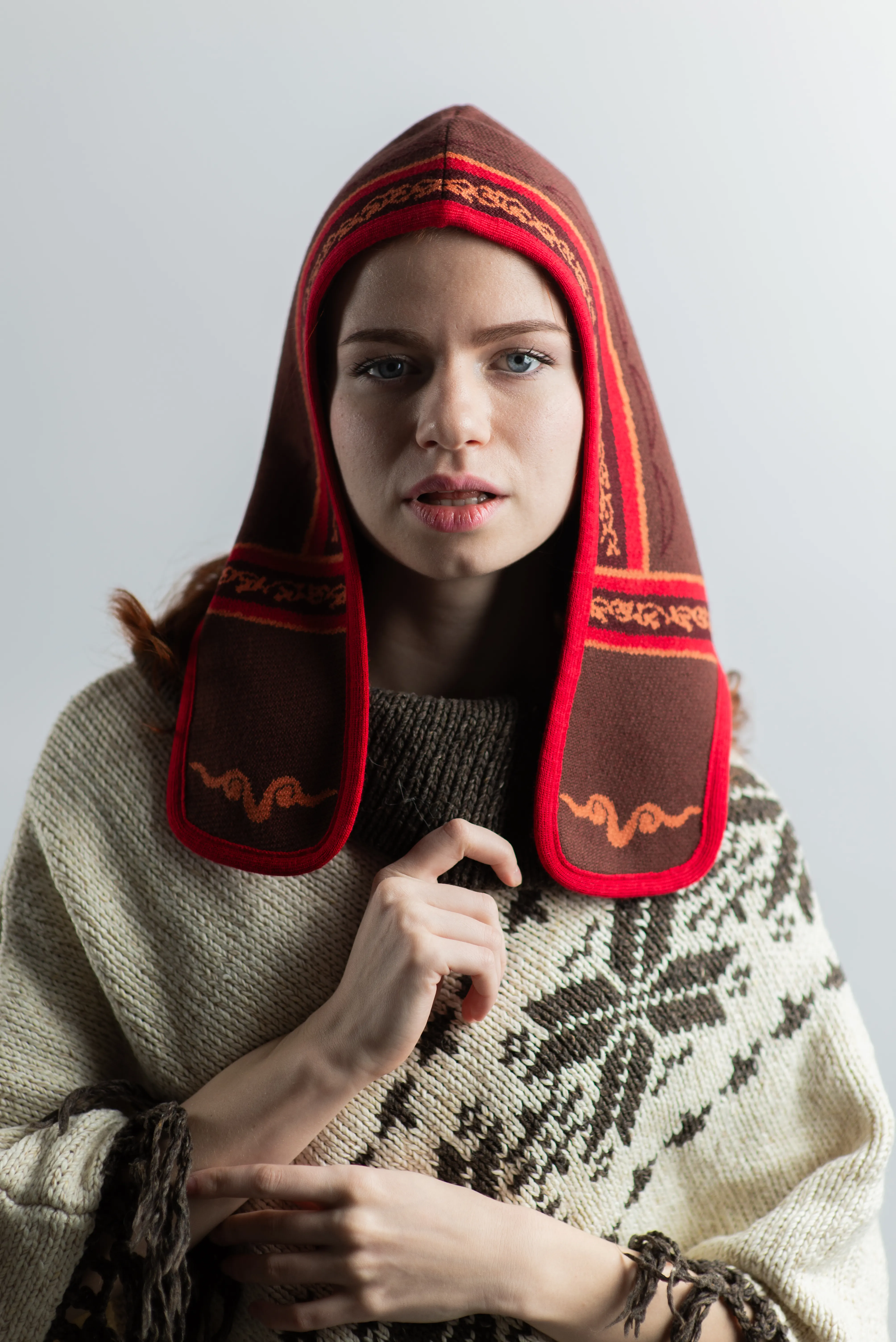 Инзер - этно-урбан шапка-капюшон с мощной защитной геометрией.
