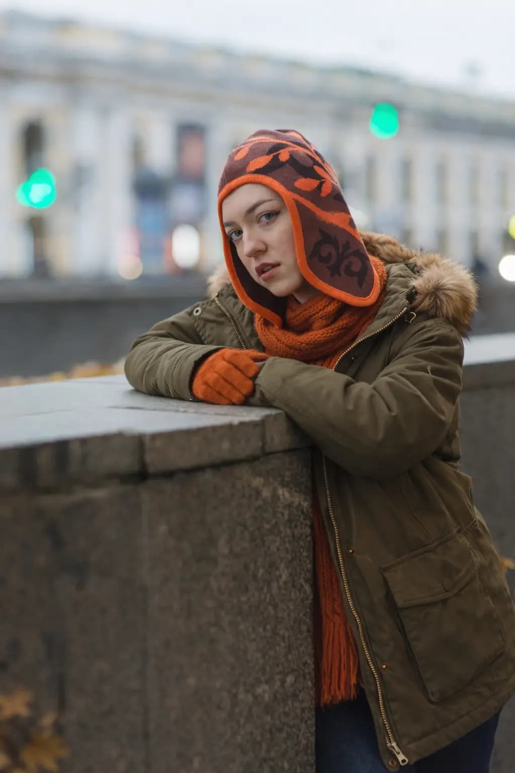 Оранжевые, коричневые и чёрные оттенки формируют тёплую природную палитру с ощущением земли, солнца и тайны леса. Это дизайнерская шапка для тех, кто ищет необычную форму, стильный орнамент и характерную посадку без случайных деталей.
