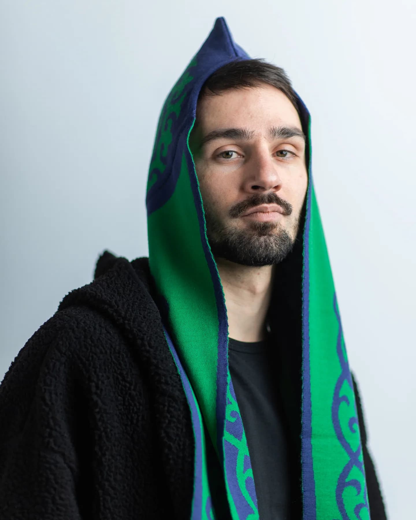 Радоль - головной убор с выраженным скульптурным силуэтом, в котором древние символы считываются как современный художественный жест. Высокий остроконечный купол и удлинённые боковые панели формируют сильный образ для города, съёмок и акцентных повседневных комплектов.